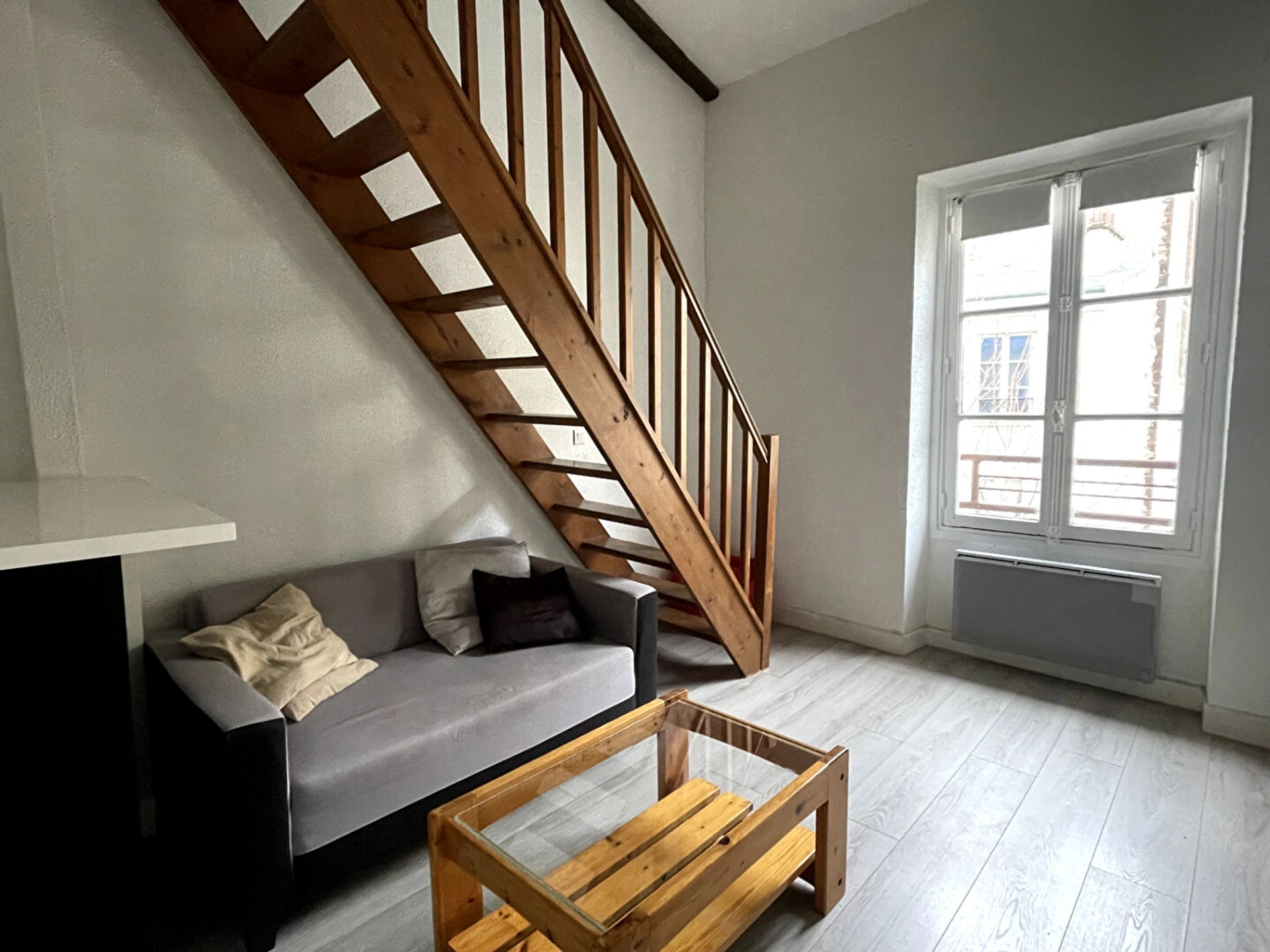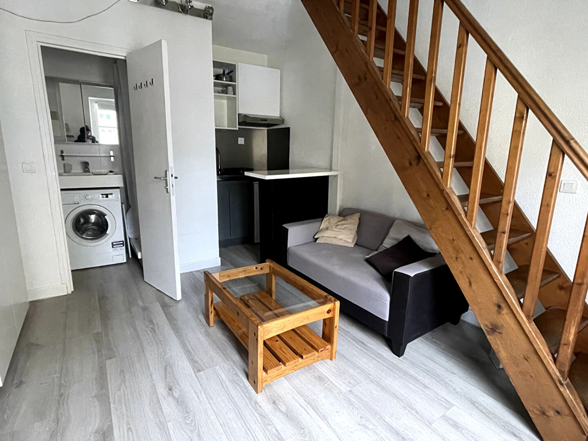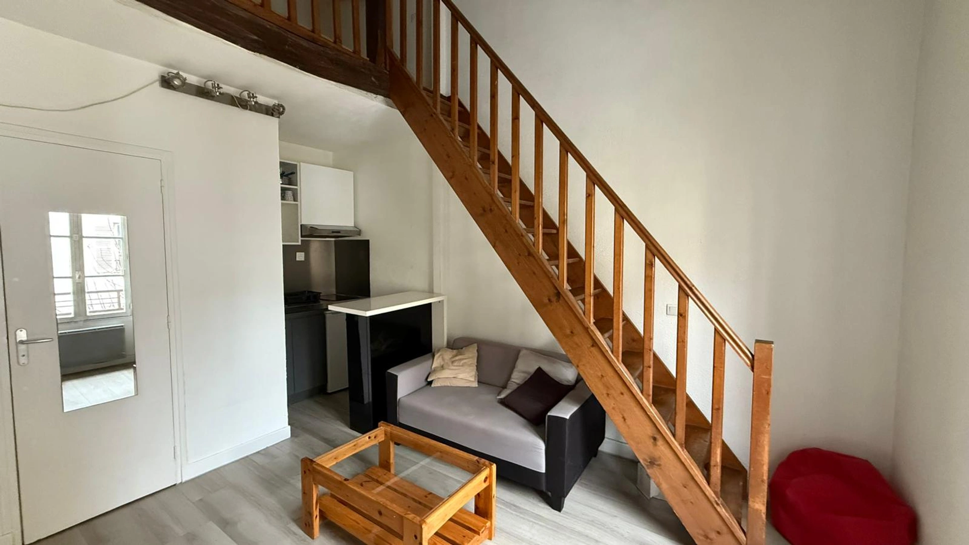 Celui-ci se compose d'une pièce de vie, d'une kitchenette aménagée et équipée, d'une mezzanine et d'une salle d'eau avec WC.