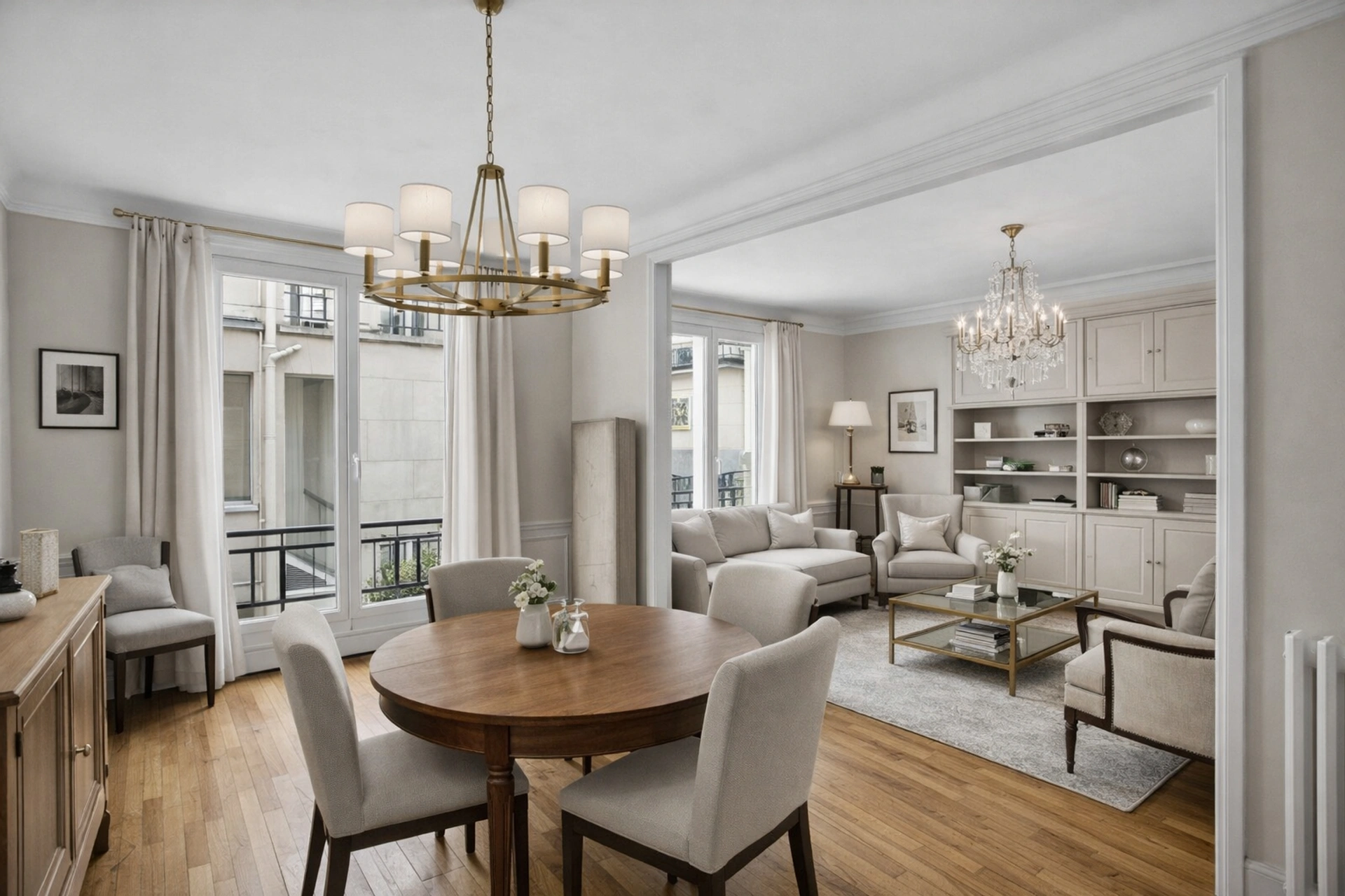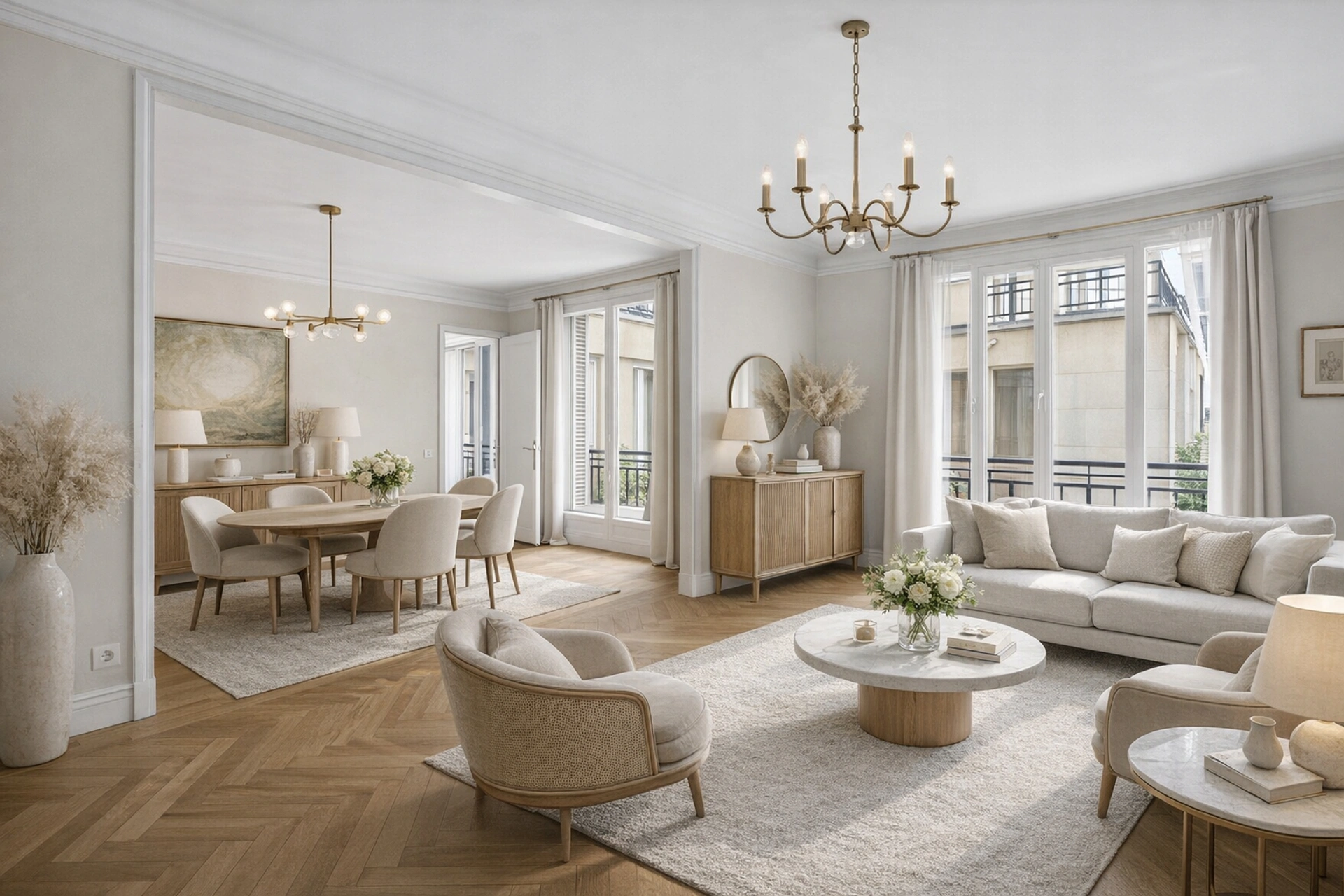 L'appartement se compose de 4 pièces comprenant une galerie d'entrée, un séjour, une salle à manger (pouvant être aménagée en troisième chambre), une cuisine dînatoire, deux chambres dont une suite parentale avec salle d'eau et toilettes, une salle de bains ainsi que des WC séparés.
