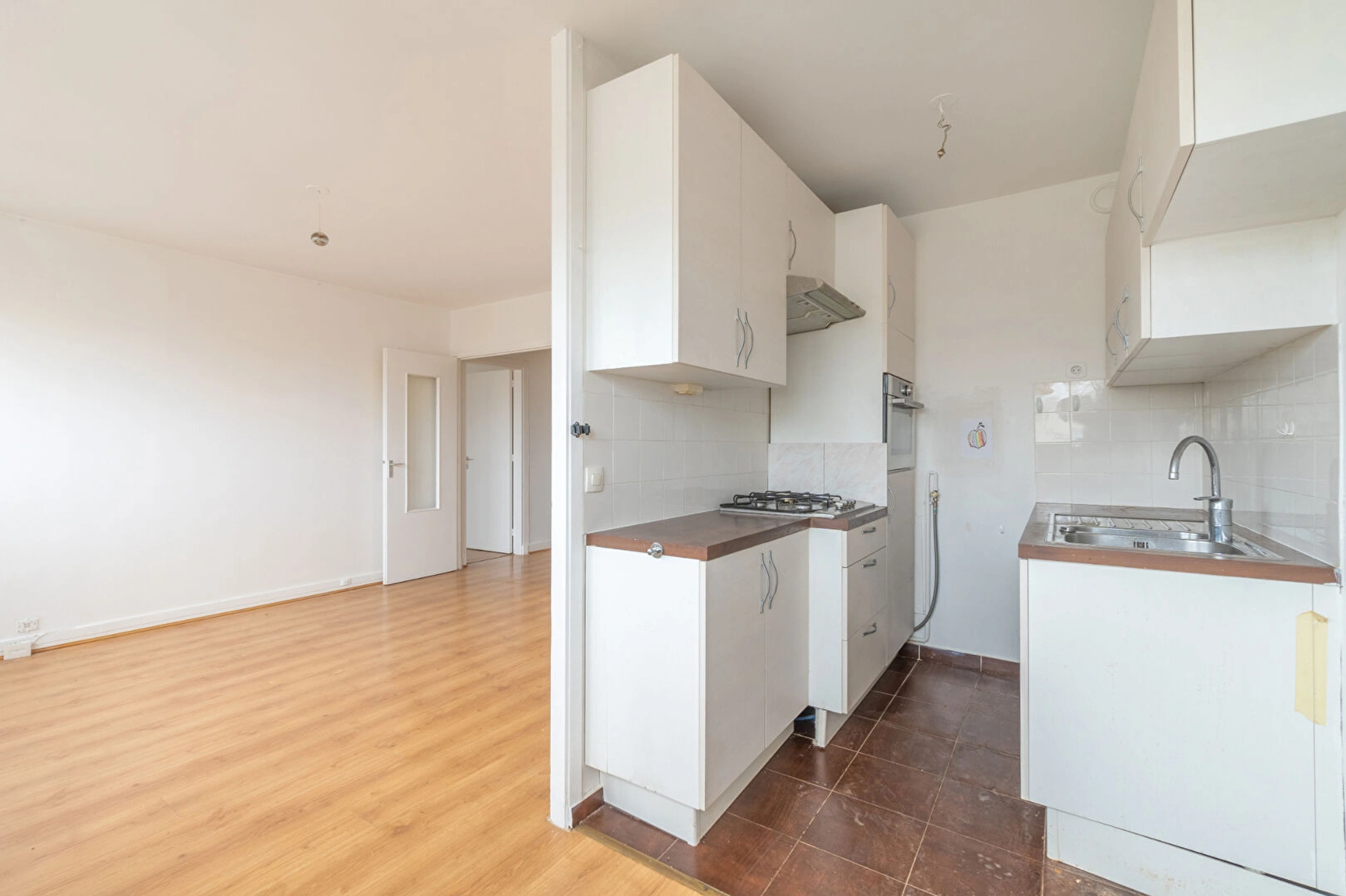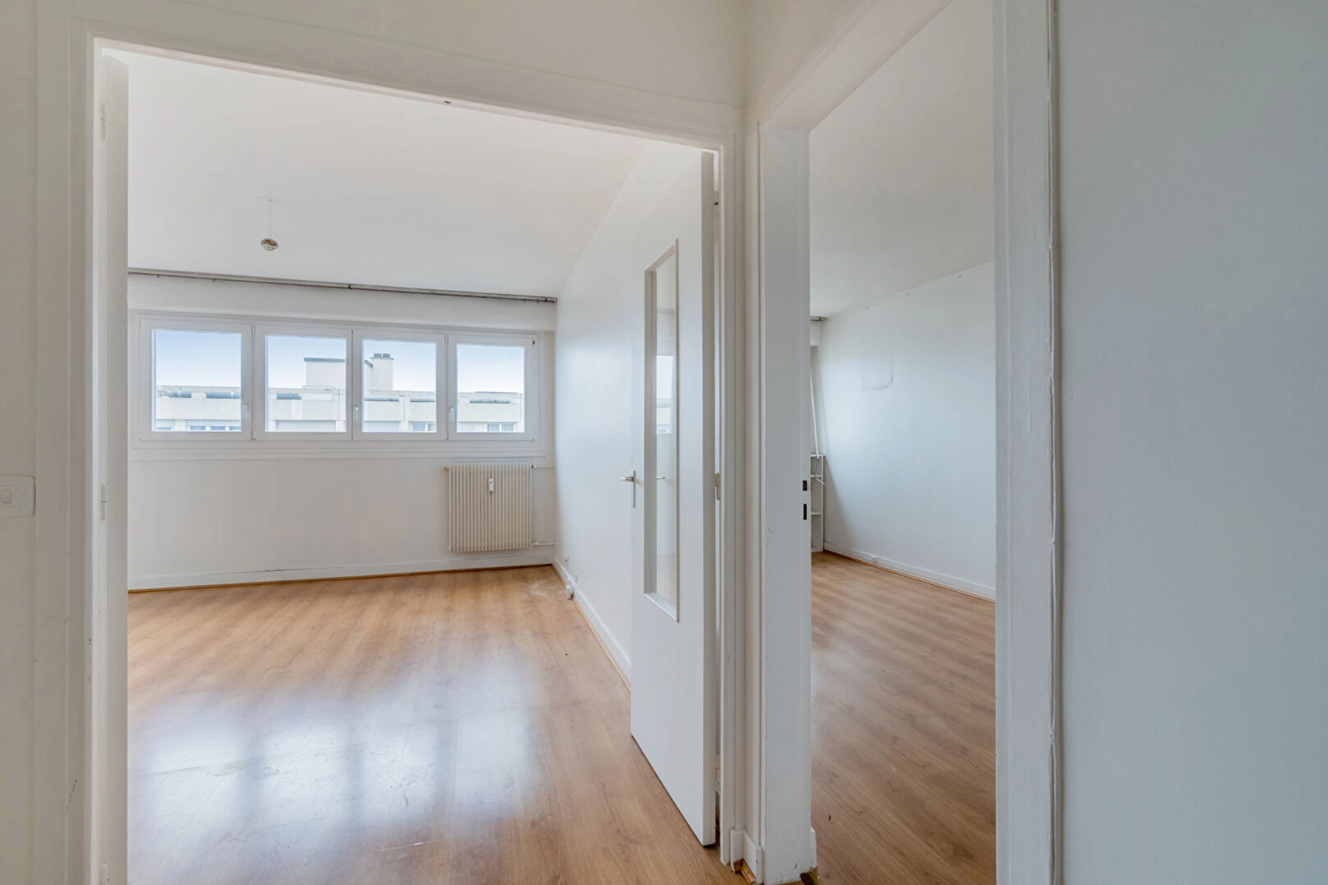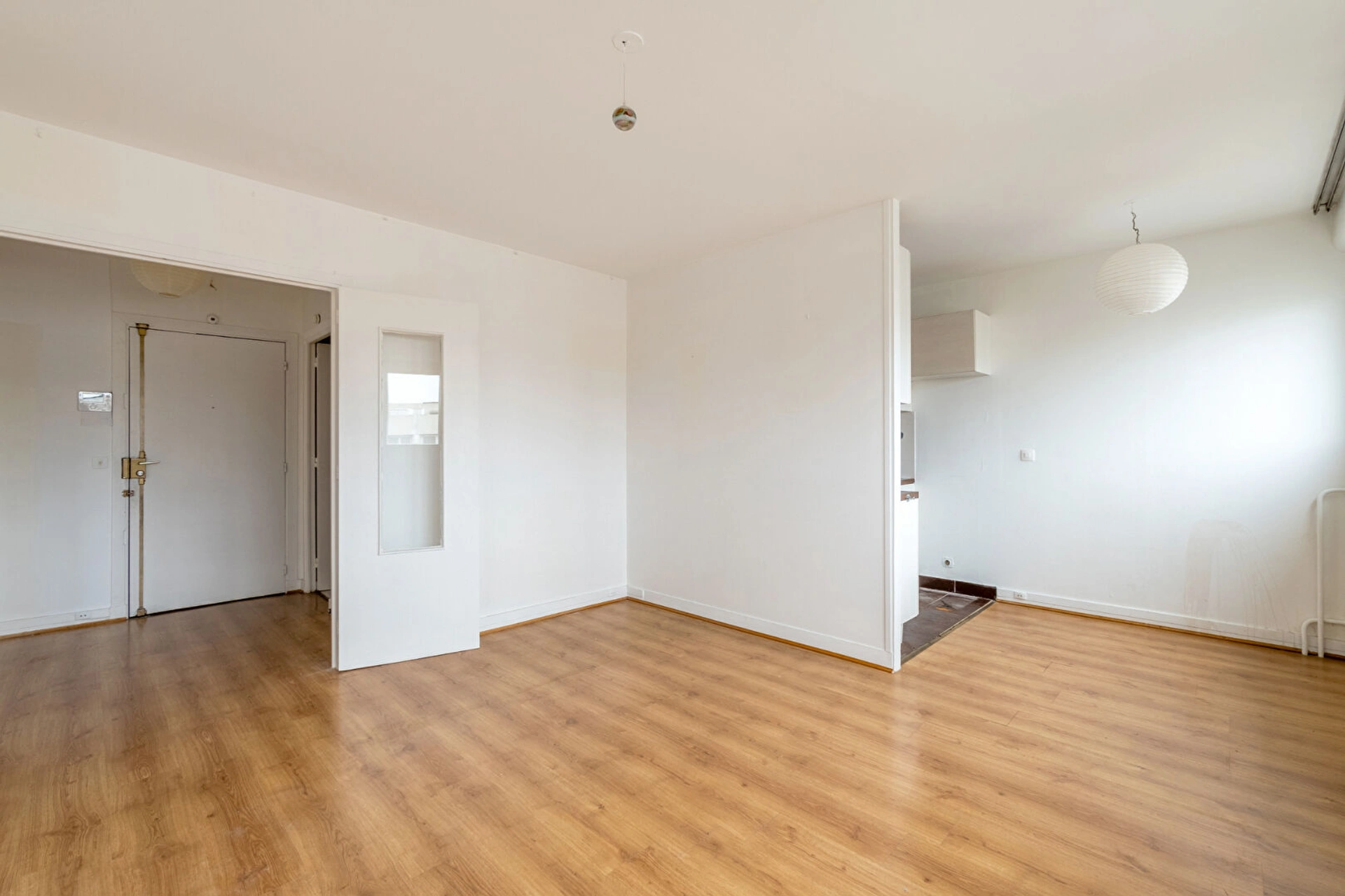 Au 10ème et dernier étage avec ascenseur, l'appartement se compose d'une entrée, d'un beau séjour exposé, d'une cuisine semi ouverte (possibilité de l'ouvrir complètement), d'une chambre, d'une grande salle de bains avec un WC.