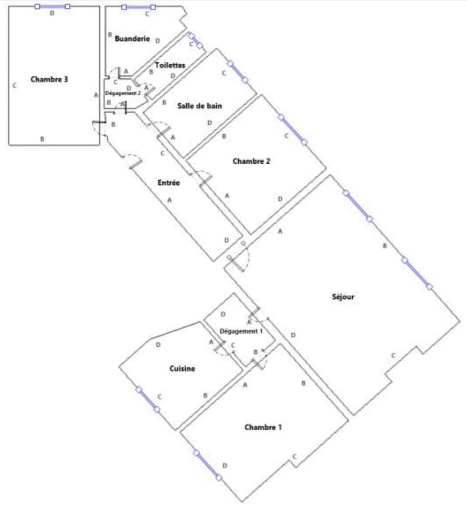Il se compose d'une entrée desservant un séjour lumineux, d'une cuisine indépendante, de trois chambres spacieuses et calmes, d'une salle de bains et de WC séparés.